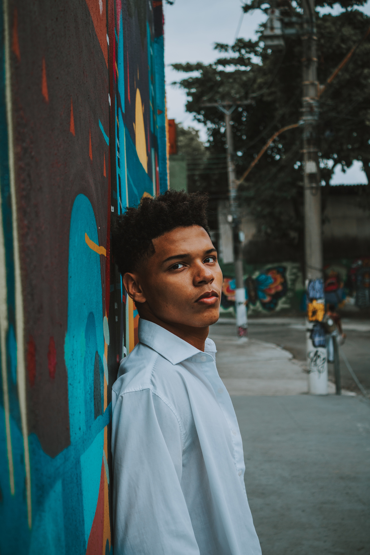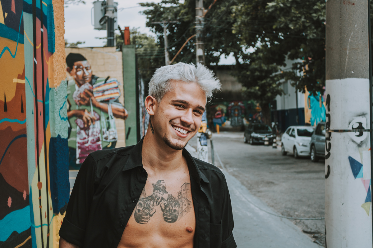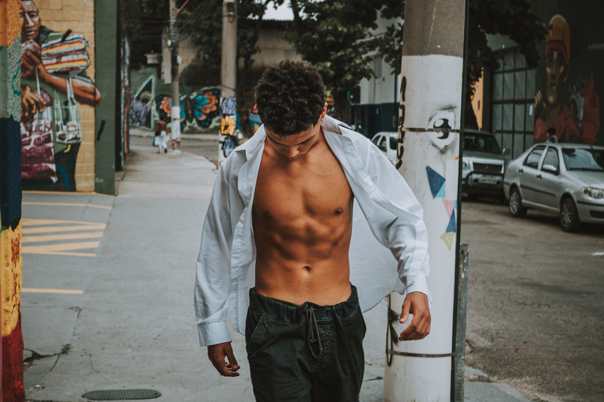 Ensaio externo masculino individual, aproveitando o cenário na rua dos grafites aqui em Niterói, pra dar um contraste no fundo, busquei fazer mais fechado, mas tá aí o resultado.
