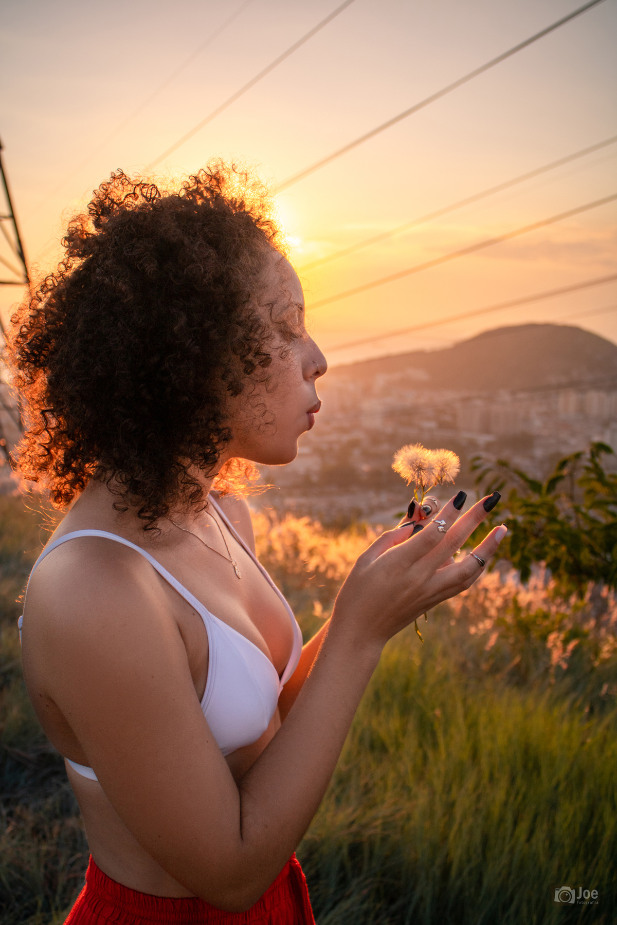 Fiz esse ensaio no morro onde moro, pertinho da minha casa, local com árvores e uma vista linda, num horário por volta de 17:00 horas, aproveitando o pôr do sol e o vento que estava ao nosso favor.